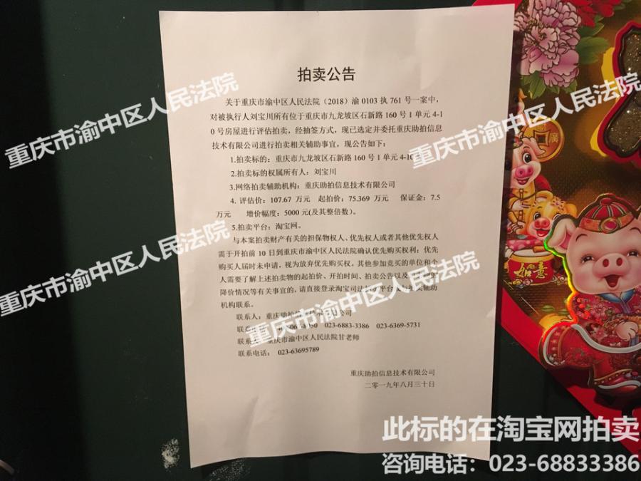 标的物名称:九龙坡区石新路160号1单元4-10号房屋