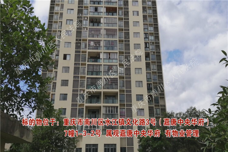 标的物名称:重庆市南川区水江镇文化路3号(嘉唐·中央华府)7幢1-3-2号房屋